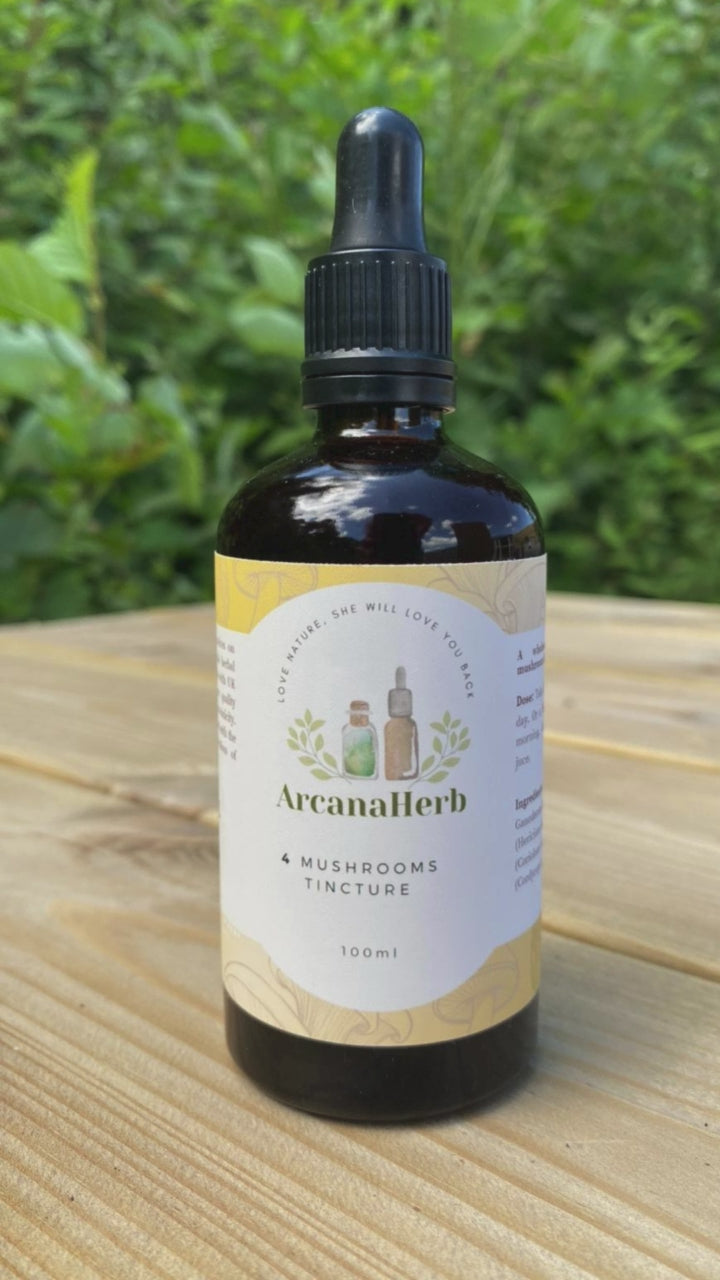 Alcohol Free 4 Mushroom Mix 1:3 Tincture . Lions mane , chaga, Cordyceps, Reishi. 100ml, 500ml available